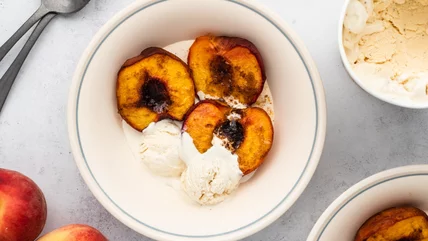 If you're a fruit-loving minimalist at heart, you can always enjoy these peaches just as they are, though you should probably give them a few minutes to cool before digging in. Brookes suggests you might enjoy them with whipped cream, ice cream, or yogurt, adding that you could also sprinkle them with chopped nuts (almonds would be particularly yummy!) or seeds. If you want these peaches to be even more dessert-like, though, you could use them to top a slice of pound cake or make a peachy version of strawberry shortcake.