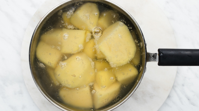 - Boil a pot of water and place the potatoes in the boiling water.