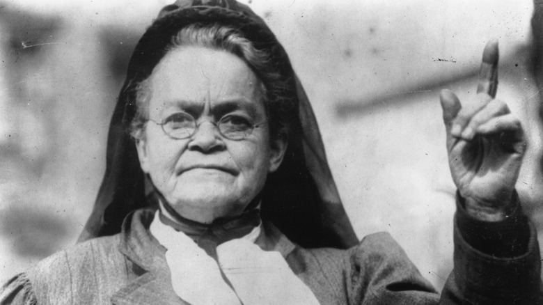 Another large factor was the temperance movement, which went hand-in-hand with the women's rights movement. Carrie Nation, perhaps one of the most famous temperance leaders, lead a smashing (and we mean that quite literally) battle against the barrooms of the day, influenced by a drunk husband and strong religious beliefs (via Kansas Historical Society). Other feminist temperance leaders saw alcohol as a gateway to abuse, as husbands could spend all the family's living wages at bars and come back heavily under the influence (via History).