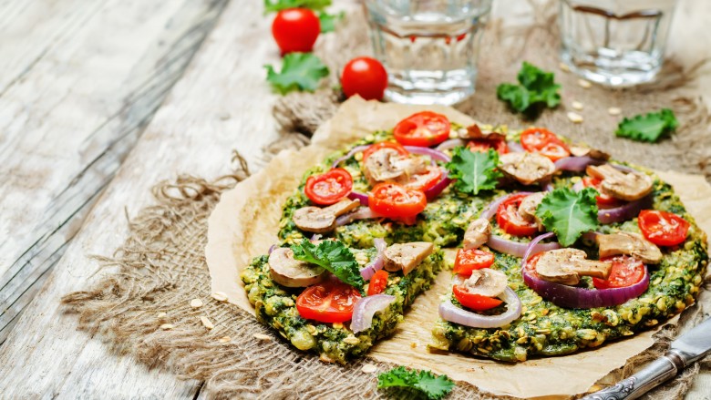 This recipe from Farm Fresh Feasts combines bread flour with kale for a crust that's closer to what you're accustomed to, but still loaded with green nutrients and much less carbs.
