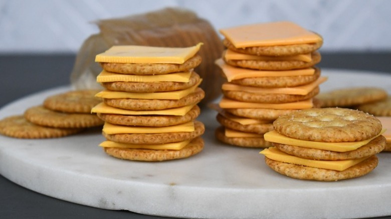 Taking it further, we stacked the slices with a few Ritz crackers, both for testing purposes and as a mid-afternoon snack. With a little more going on flavor-wise, it was even harder to tell the two apart, and both were enthusiastically eaten.