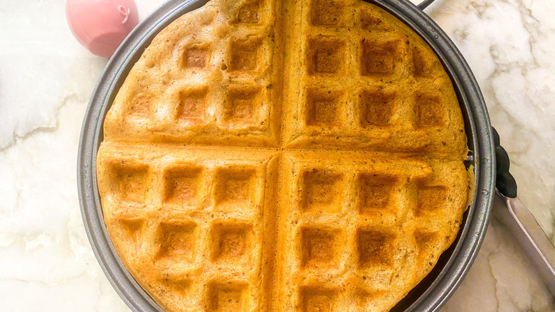 As for things to love about this recipe? There are plenty. One thing about these waffles that we're obsessed with is the taste. A slight hint of cinnamon goes a long way. As for Hahn? "What I love most about these waffles is how crispy and sweet they are — and how foolproof they cook up," she shares. "The other nice thing is these can be made totally vegan with the flax egg and a plant milk," Hahn adds. "So if someone has [a] dairy or egg allergy, these are great for them!"