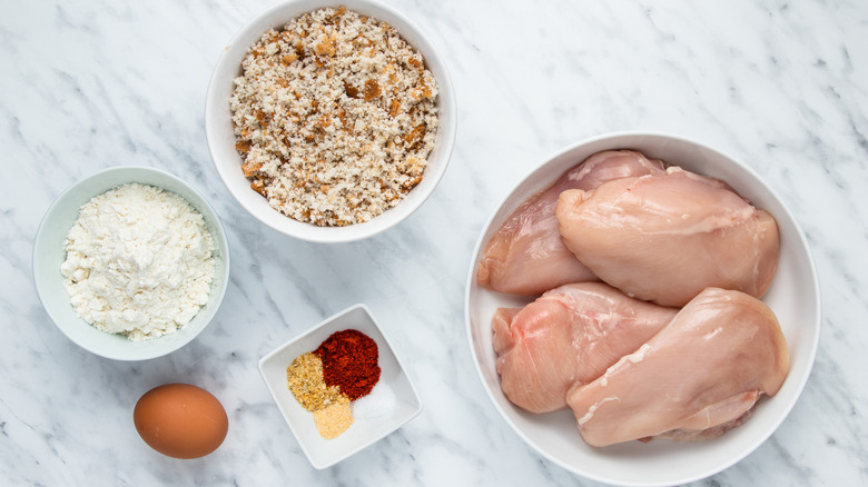 Gather the ingredients for these chicken nuggets
