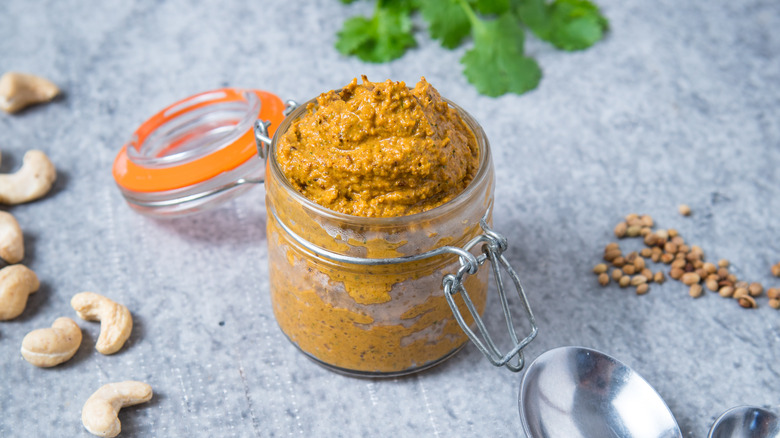 While the ingredients within a curry are quite flexible and can be customized to whatever you personally prefer, one key ingredient defines the taste of the dish — the flavor-packed spice paste. This base comes in small jars that you'll find nestled along the shelves of your grocery store and are bursting with aromatics and seasoning, including red chili peppers, turmeric, ginger, coriander seeds, and more. Without this central ingredient, it can be a little intimidating to know where to start. Luckily, there are a few good substitutes that you can consider if you find yourself craving red curry but lack the proper paste.