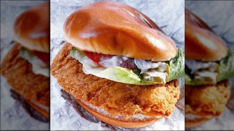 It was 25 years ago that Wendy's introduced the Spicy Chicken Sandwich as a "limited time" menu offering, but customers demanded its permanent residency on the menu. Needless to say, Wendy's made these blissful dreams come true. TheRecipe voted it as the number one most delicious item on the menu and, the sandwich phenomenon also secured a spot on Brit + Co's "Best Fast Food Chicken Sandwiches to Try on National Fast Food Day." Perhaps it's due to a reliable simplicity of only a few quality condiments and a complementary flavor profile that pairs with a side of fries and a classic Frosty.
