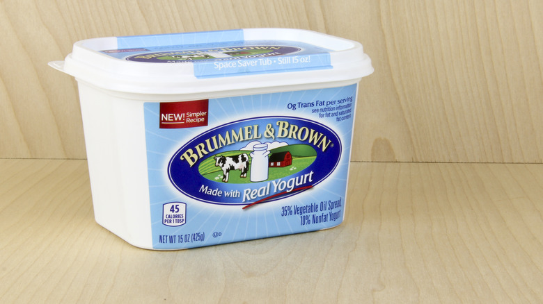 Brummel & Brown is far from your typical spread. The product claims to be healthier than actual butter because it's made from yogurt. But when you look at what is actually in it, there are still some vegetable oils and other ingredients that make it far from the ideal butter product. For instance, there's soybean oil, nonfat yogurt, palm kernel and palm oil, modified corn starch, salt, mono and diglycerides, potassium sorbate and more. So Brummel and Brown isn't really healthy. More than that, it doesn't taste that great.