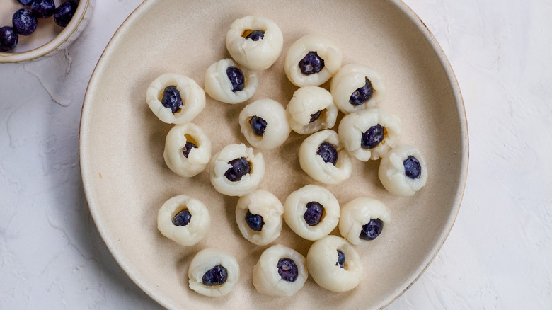 Prepare the lychee and blueberry 'eyeballs'
