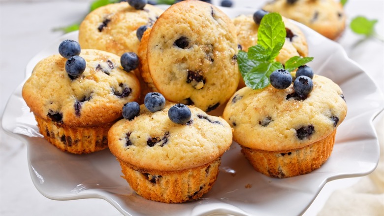 While resting your batter is the most important change you can make, there are a few other factors to consider. McCormick recommends double-checking your leavening agent for freshness, as expired baking powder and baking soda will leave you with flat-top muffins again. Because gravity is always going to be a thing, a lighter muffin recipe (like blueberry) will be more successful in achieving domes.