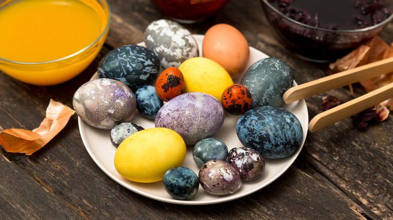 With that being said, it's pretty common these days to see boxes and boxes of egg decorating kits at your local grocery store. Some are themed and have extra accessories, while some just have dye and let you use your own imagination. Even if your brain is a little fried (pun intended), sites like Good Housekeeping have you covered on egg inspo.