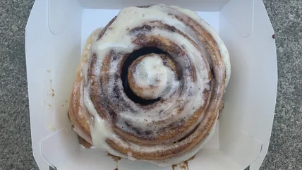 But aside from the dryness, this treat is really yummy. We like how each roll only takes one or two bites to enjoy and makes a perfect snack for one person. The cinnamon sugar flavor is pronounced throughout and the cream cheese frosting adds that signature tangy flavor to each bite. We'd love a little more frosting on each roll, but we would order these again either way.