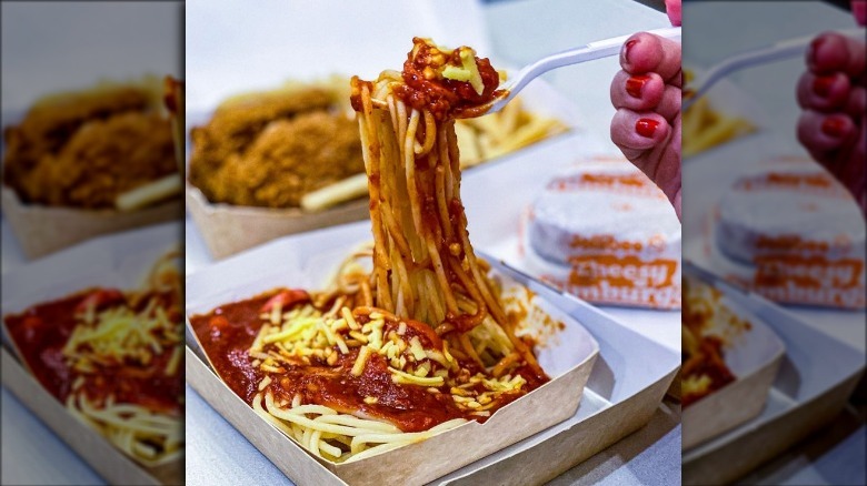 Before you judge Jollibee's Jolly Spaghetti too harshly, you should give it an honest try. It may sound like an odd concoction, but there's a chance that you will fall in love with this menu item. If that happens, you'll struggle to order anything else ever again from this place.