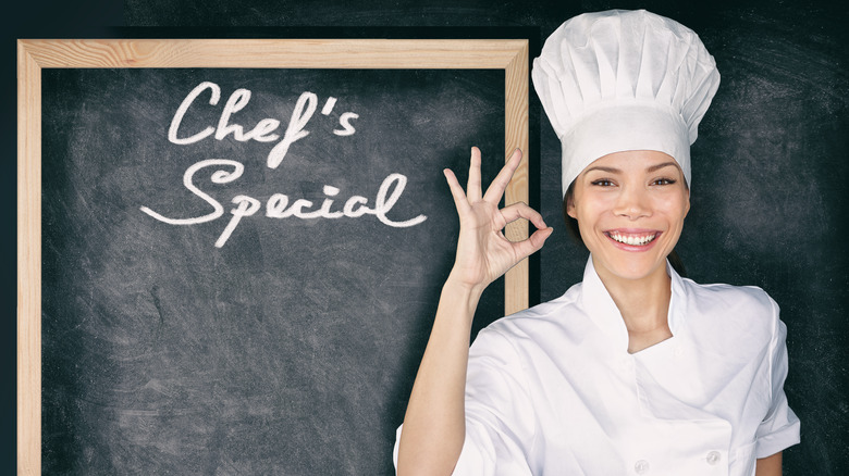 As one unnamed restaurant worker pointed out (via The Independent), staying within the confines of the menu — and, preferably, the core content of said menu — is ultimately just common sense. "If it's a steakhouse, I don't order the pasta," they said. "If it's a burger joint, I'll probably order a burger, not a chicken wrap. Don't send the kitchen into a frenzy because they can't remember how to prepare your food. And order something they're good at making."