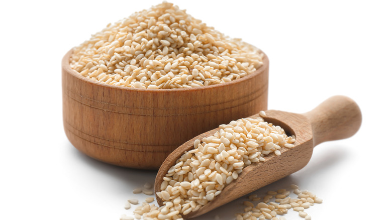 While Pirate's Booty is able to say it is totally free of gluten and nuts, the seed situation is an entirely different story. Some people are allergic to seeds like sunflower, pumpkin, poppy, and sesame, and it can be a problem when a food either has seeds in it or is produced in a factory that happens to deal with seed-related foods. Sometimes, it's quite easy to figure out if seeds are involved — especially when you're talking about a hamburger bun, a bagel, salad dressings, or even just a bag of seeds. In some cases though, it's difficult to know if a food contains or is made around sesame seeds.