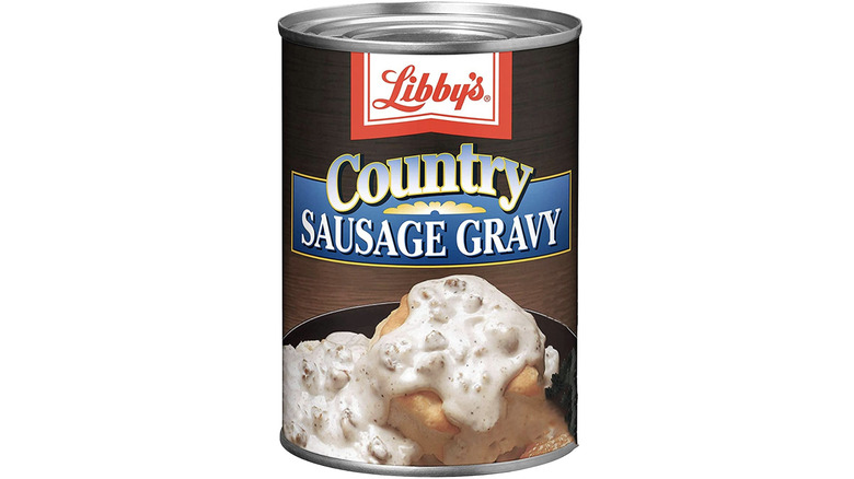 Libby's has mostly made a name for itself in the canned vegetable section of the grocery store. As a brand that's been around since 1868, it rivals the classic behemoths, Campbell's and Heinz, for length of time on the market (Amazon). And its popularity is apparent. The brand claims this country-style gravy is comfort food that's "perfect to spoon over warm biscuits, mashed potatoes, rice, pasta or cornbread for that extra touch you love." Some reviewers said it's much better than even homemade versions of gravy, which seems hard to accomplish with ready-made gravy from a can. But somehow, Libby's has figured out the secret sauce that keeps many customers coming back for more.
