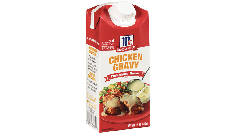 It's no surprise McCormick is doing all it can to stand out in the market. The company has packaged their gravy rather uniquely in a cardboard container with a pour spout and resealable twist-top lid. In addition to the package design, their packaging states that their gravy recipe is made with "real chicken stock and McCormick spices." Considering that McCormick has dominated the spice aisle for a while, there's a good chance that their seasoned gravy would be a winner for any chicken dinner. Many of the favorable reviews appreciated that the gravy wasn't overly salty, it had a non-greasy texture, and the packaging was a convenient way to save any unused product.