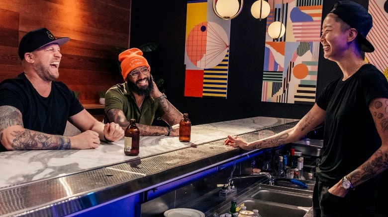 Guess who's back! Kristen Kish, Justin Sutherland, and Jeremy Ford are here to feed your fast food cravings with Season 2 of "Fast Foodies." This time around, the three superstar chefs will take their cues from celebrities that include Jillian Bell, Jesse Tyler Ferguson, Reggie Watts, Chris Jericho, and Bobby Moynihan. In case you were hiding at the very bottom of the Mariana Trench for most of 2020, "Fast Foodies" really isn't like any other competition out there. "Making good food, hanging out with friends, hanging out with these celebrities, laughing [and] having a good time," according to 2018 "Iron Chef" winner Sutherland, is kind of the point of the whole shebang. Food, laughs, and chumming it up with celebs more or less exactly what you're in for, in addition to French fries falling inexplicably from the ceiling, tarantulas, and waiters on roller skates — because why not?