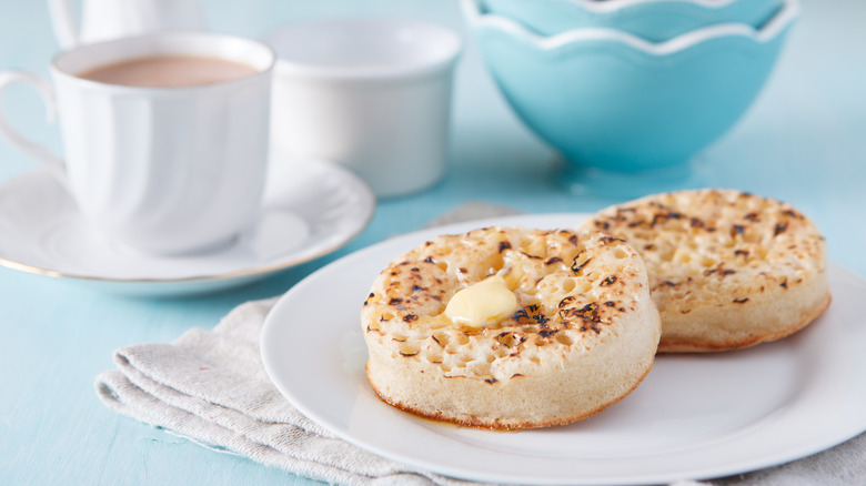 The British are internationally famous for their love of tea and crumpets, likely spreading their enthusiasm for the duo throughout the formerly vast British empire. As Crumpet Man explains, crumpets and their ancestors have been popular as everyday food in the British Isles for centuries. However, on the other side of the Atlantic, crumpets are often confused with everything from English muffins to pancakes. The confusion might be in part due to the fact that they're not usually available in regular grocery stores in America.