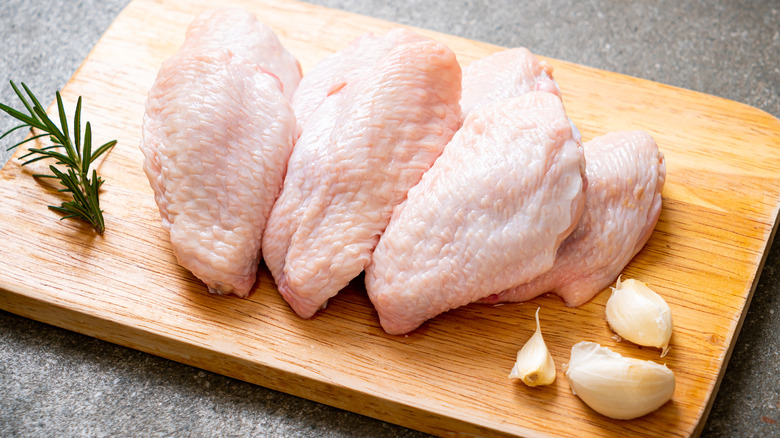 If you're cooking boneless thighs or breasts that vary significantly in size, consider pounding them out to make them more even before adding them to the air fryer. Kitchn suggests placing a piece of chicken inside a durable food storage bag and using a meat mallet to pound out the chicken to an even thickness. Bonus: The thinner the piece, the quicker it will be ready to enjoy.