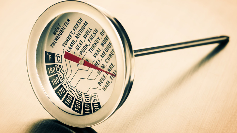 You have a few options when it comes to checking the temperature of your cooked chicken. Instant-read thermometers are among the most popular, giving quick readings in digital or analog styles. Or, try thermometer-fork combinations, which have at least two prongs, making them helpful for checking the thick parts of chicken (via Better Homes and Gardens).