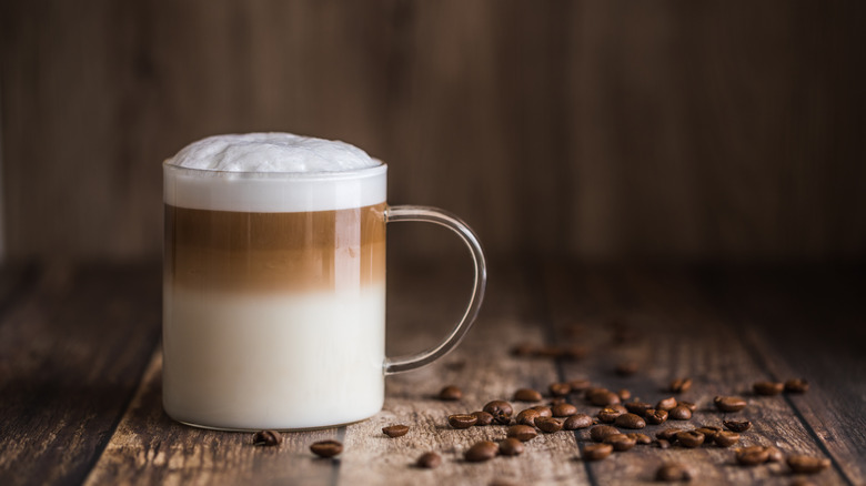 Another super-common coffee beverage is the cappuccino. In fact, there's a good chance that you've ordered a cappuccino or two in your time, even if you didn't know exactly what it was. This is a coffee drink that utilizes an espresso as the base of the beverage, per Drink Trade. Then, foamed milk is added to create a creamy drink that's sometimes confused with a latte. However, with a cappuccino, you're going to get that lovely foam on top. And since you have the crema mixed with the froth from the milk, cappuccinos are super foamy. Oftentimes, if you order a cappuccino at a coffee shop, they'll create a design with all that foam.