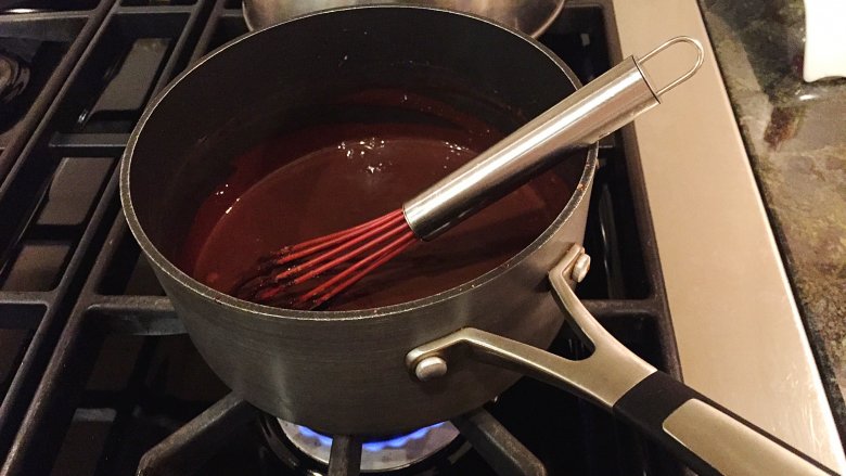 Grab a small saucepan and set it on your stove. Add cocoa powder, whole milk, sugar, and salt, and whisk, whisk, whisk until it's all combined. Cook it over medium heat. Bring it to the slightest boil and then remove it from the heat and set it aside until you're ready for it.
