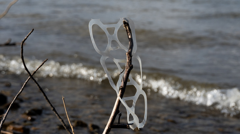 The environmental toll of plastic waste found its way into the public discourse back in the 1960s, per the Science History Institute, but it's only recently that large companies have begun trading in their synthetic packaging for more climate-friendly alternatives. For beer companies, the universal culprit are those sturdy six-pack rings (known in the biz as yokes and hi-cones) that pollute the ocean and pose a strangulation threat to marine creatures.