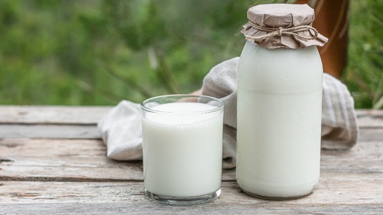 When dry ingredients aren't an option, reach for something wet. Buttermilk is a great substitute because of its acidity, so combining it with baking soda ignites the same chemical reaction as in baking powder. According to Healthline, buttermilk occurs as a byproduct of butter when sweet cream is incorporated. Add ½ cup of buttermilk to ¼ teaspoon of baking soda to achieve the equivalent of one teaspoon of baking powder.