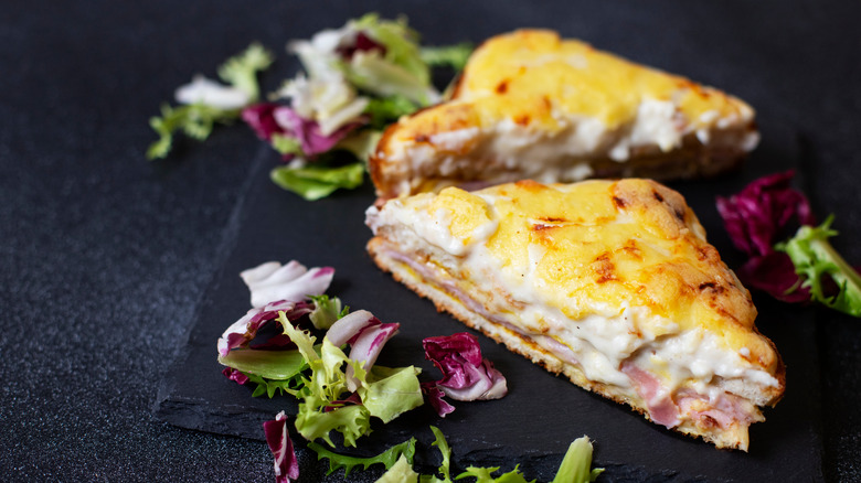 The cookbook author joined "Today" and shared her "French twist" on a ham and cheese sandwich called a Croque Monsieur. Lee explains that this is not a "complicated" sandwich, but it definitely "elevates" what would otherwise be your run-of-the-mill ham and cheese, and boy is there a lot of cheese. Lee uses Gruyère to make this ooey, gooey meal, along with country white bread, some dijon mustard, a little nutmeg, and ham.
