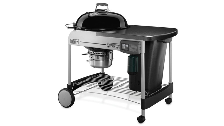 Constructed with premium-grade US steel coated with black porcelain enamel, the Weber Performer Deluxe is built to last and resist rusting and peeling. With 363 square inches of cooking space on the grill grate, this grill can handle cooking an impressive amount of food. The hinged grill grates allow you to add more charcoal or tend to the fire with ease. More features include a rust-proof top, two crack-proof wheels for durable mobility, a built-in thermometer, a spacious work table, and a charcoal storage bin. The grill even comes with a cookbook to give you some recipes that are perfect for the grill.