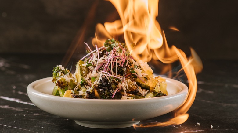 Technically there's no one "right" way to cook vegetables. You can roast, steam, boil, sauté, or even eat them raw. An Ina Garten recipe for roasted Brussels sprouts (via Food Network) suggests roasting the sprouts for 35 minutes at 400 degrees until crisp on the outside and soft inside. Meanwhile, Martha Stewart has a recipe for steaming your Brussels sprouts to perfection before topping them off with butter and chives. There's a preparation method for every taste, but you'd be hard-pressed to find anyone suggesting to actually burn your veggies ... until now.