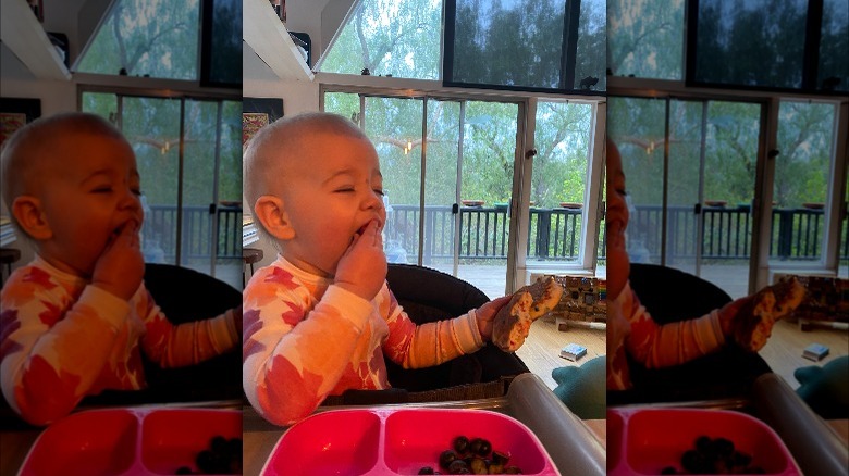 Now that she's a little older, Josephine is getting to try all of the goodies she's been hearing about from her pops. Lucky for fans, the renowned pastry chef has been sharing his child's journey with food on social media, and the most recent installment has fans of the "Ace of Taste" host saying a lot more than "aww." Taking to his Twitter page on Wednesday, Goldman posted a photo of Josephine enjoying a meal of pancakes and blueberries that, by the looks of it, seemed to get her stamp of approval. The kiddo was snapped shoving a handful of food into her mouth while holding not one, but two pancakes in her hand, which, frankly, is an expert strategy.