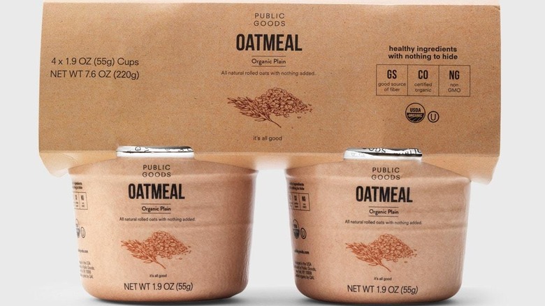 A four-count package of Public Goods oatmeal cups is available on the brand's website for $8.95 as of April 2023.