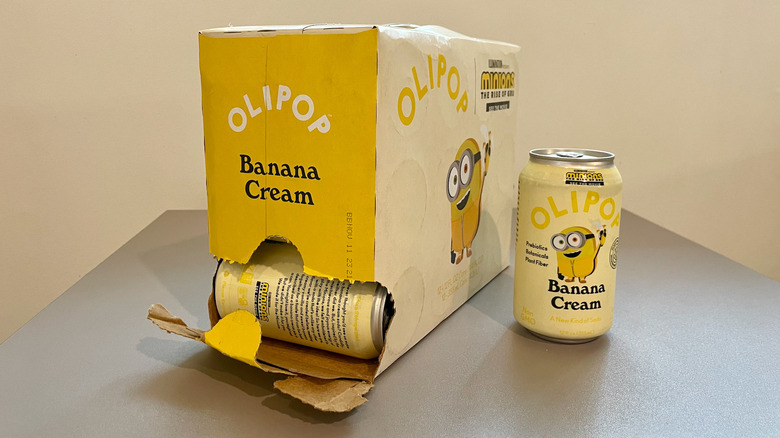 The pairing of a '70s diva and a 21st-century alt boy isn't the only left-field combination inspired by the new Minions flick. On June 6, the better-for-you soda company Olipop released a new limited-time-only Minions-branded soft drink. What flavor is it? Banana Cream, of course. Not only are the Minions banana yellow, but according to a press release shared with Mashed, bananas are their favorite food.