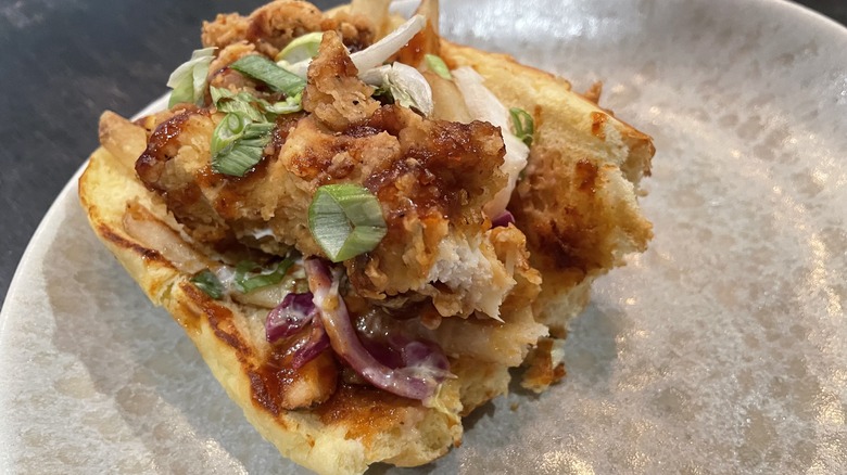 Honestly, the newest menu item at Buffalo Wild Wings really is a newcomer for the chain: the Bird Dawg is quite unlike anything else the restaurant offers. BW3 has a number of chicken sandwiches, to be sure, but they are all rather traditional sandwiches in that they are served on round buns with (for the most part) traditional ingredients like lettuce and tomatoes. Bird Dawgs are on a roll shape that's new to the chain, and they use a larger tender than you'll usually get when you order Buffalo Wild Wings' Hand-Breaded Tenders, too.