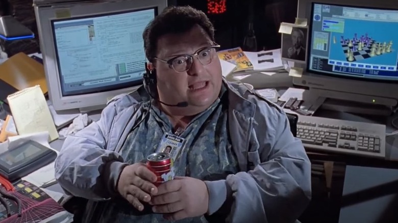 The promotional efforts made to push Jolt upon its launch are well-known, and they included David Letterman drinking the soda on air and proclaiming, "Wow!" (via People). But the cola's 15 minutes of fame weren't restricted to a one-time shot on "The Late Show." Having gained a reputation as a delectable liquid fuel for non-coffee drinkers, Jolt Cola was seen in several films during the '90s — perhaps most memorably as the drink of choice for "Jurassic Park" villain Dennis Nedry (Wayne Knight) when he bickers with John Hammond (Richard Attenborough).