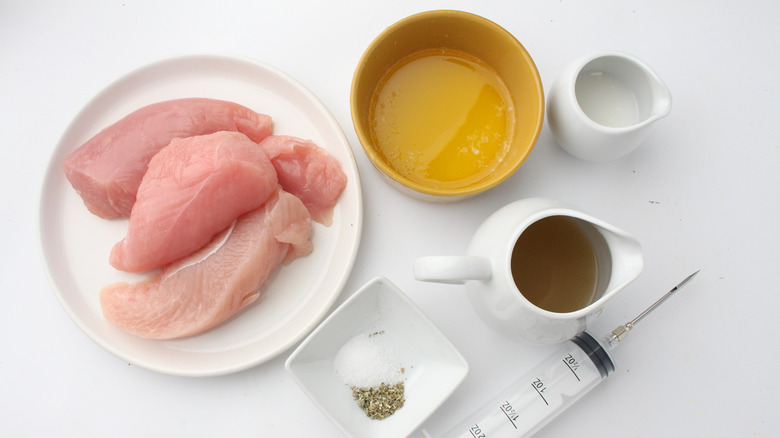 Now inject the marinade into the thickest part of the turkey breast, being careful not to pierce through to the other side of the meat. Continue injecting the marinade until it is evenly distributed throughout the pieces of turkey. If you infuse it slowly and steadily, this should be the perfect amount for about 1 pound of meat; just scale up the recipe if you're cooking more.