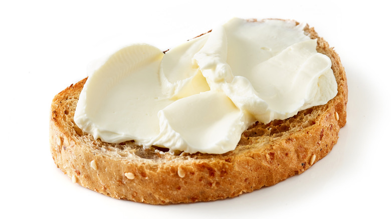 All Recipes explains that cream cheese is a combination of cream and cow's milk. To be classified as such, it must have 33% milk fat and its moisture content cannot be more than 55%. And if there is one cream cheese that has really put this food on the map, it would have to be Kraft Philadelphia Cream Cheese, which according to TODAY, was created in New York in 1872 by a dairyman named William Lawrence. This brick or block, depending on your point of view, packaged in a silver wrap is a staple in many households. We love it plain, but if you want to majorly upgrade your cream cheese, we have a few ideas that you might want to try.