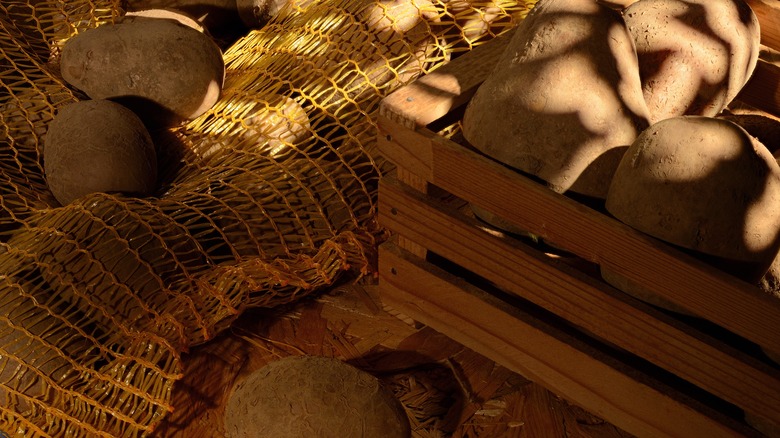 It's simple: Just an apple into the mix. It's an idea that didn't just spring out of nowhere, and it's not an old wives' tale, either. Apples produce a gas called ethylene, and when this comes into contact with potatoes, it actually stops them from sprouting. While apples and potatoes may go well together because of this, the other advantage is that keeping this fruit away from other, ethylene-sensitive fruits and vegetables is a positive, too. Apples can cause this type of produce to become ripe too soon. So, it's not just where you store your potatoes, but what else you put with them.