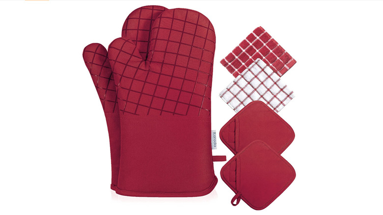 It's easy to get paralyzed by the decision-making process. With so many deals out there, the hunt for a great pair of oven mitts and pot holders can be surprisingly challenging. The good news is that this set of oven mitts and pot holders from Redriver hits all the marks and should have just about everything you're looking for. This set comes with two oven mitts, two pot holders, and a couple of kitchen towels.