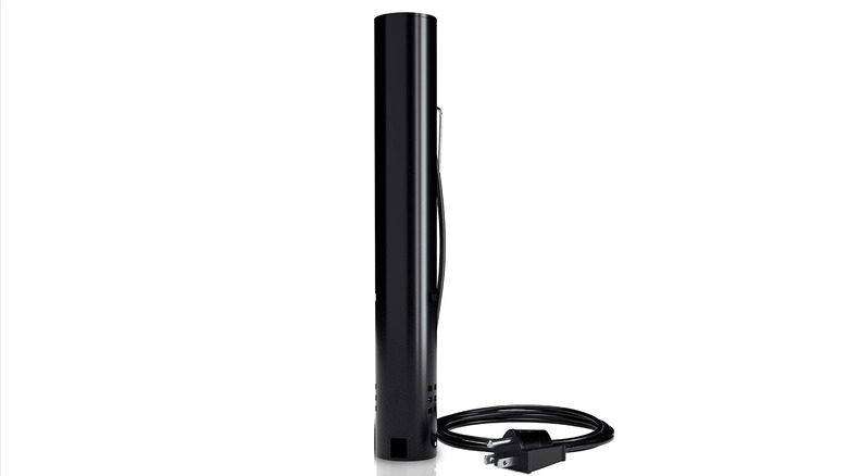 When this immersion circulator is running, it operates at 15.5 dB. To put that into a real-world context, that level of noise is even quieter than the sound of leaves rustling (via American Academy of Audiology). Aside from its relatively noiseless operation, this sous vide machine waterproof, made with stainless steel, and also capable of heating quickly. Not only is the digital touchscreen on this sous vide machine intuitive, it also has a modern design that's bound to add a touch of technological elegance to your kitchen. It also comes with access to an online cookbook to help spark your culinary imagination. Stylish, practical, and less audible than a whisper, this immersion circulator is one of the best on the market.