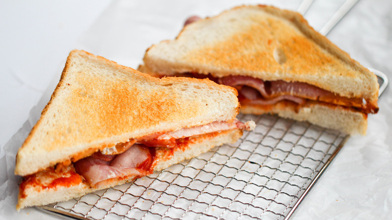 "Butty" might sound like a rude word, but in British slang, it's actually just a nickname for a sandwich that derives from the butter used to slather the bread. Bacon butties are a popular breakfast sandwich, but they're also something that would not come amiss at high tea. Although a true bacon butty would be made with British-style bacon, a product that somewhat resembles Canadian bacon, you can make the sandwich with American bacon as well. Interestingly enough, the traditional condiment used with bacon butties is ketchup! Good to know that Americans aren't the only ones ketchupping all the things.
