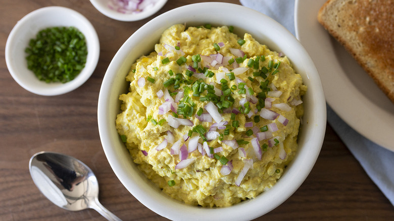 While some afternoon teas don't extend much further than scones and maybe a pastry or two, the real slap-up ones also add a selection of finger sandwiches. What makes a sandwich finger-worthy? Not only do they need to be sliced up small, but the fillings must also be on the dainty side. Egg salad ("egg mayonnaise" is the British term for it) is a sandwich filling that has been known to grace even the royal tea table, so with this simple recipe, plus some thin-sliced bread, you can construct finger sandwiches worthy of a queen.