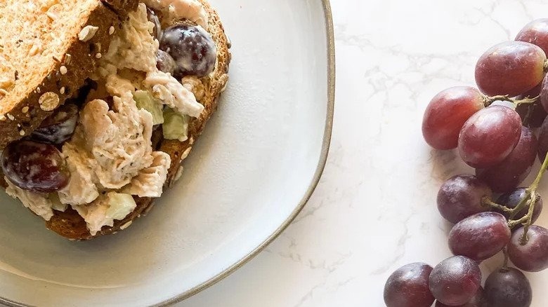 Waldorf salad is an American classic that dates back to the Gilded Age and originally consisted of nothing more than mayonnaise, celery, and apples. Here we're turning it into a chicken salad with the addition of, well, chicken. We've also tossed in some chopped nuts and grapes because, why not? While the recipe as written makes for a super-chunky salad served up in hearty sandwiches, for a more tea party-worthy version we suggest dicing the ingredients very finely and spreading light layers of chicken salad between thin-cut bread. As a final touch, slice the sandwiches into two-bite "fingers."