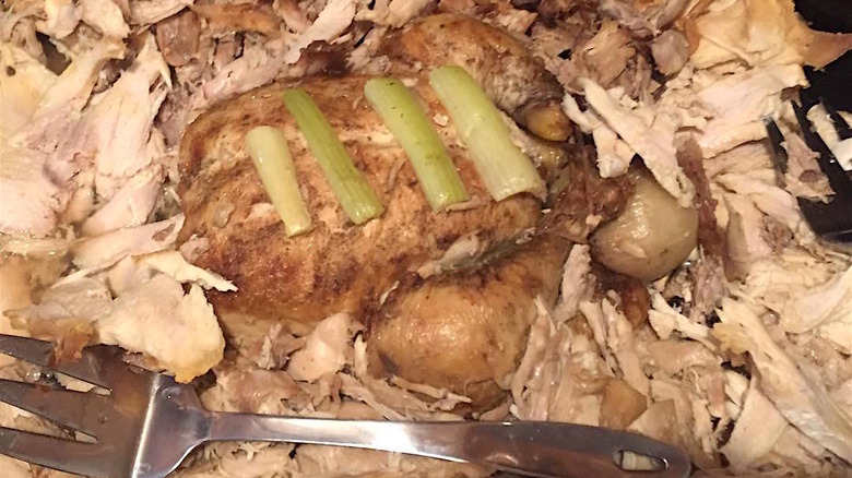 The story goes that after this turkey was carved, it didn't look like a turkey anymore. So Mom made a whole chicken to plop in the middle. Problem solved? Bonus points for the celery garnish.