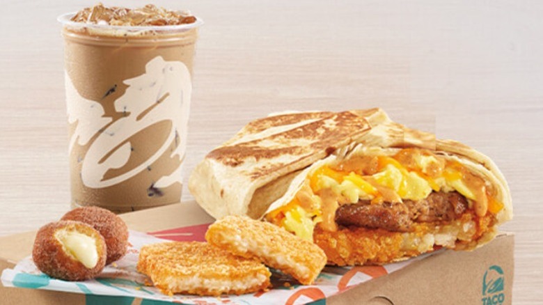 As Thrillist notes, this is not the first breakfast box that Taco Bell has released this year. In May 2022, the fast-casual chain debuted a similar breakfast offering that included a $5 breakfast box with a Grande Toasted Breakfast Burrito, hash browns, two Cinnabon Delights, as well as a coffee or a medium-sized drink. At the time, this California-based chain simultaneously released a coffee inspired by their Cinnabon Delights, which is still available in both hot and iced coffee form (via Taco Bell).