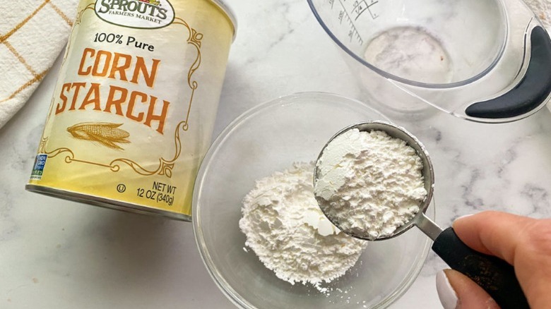 - In a small bowl, mix together the remaining water and cornstarch. Stir until it is completely smooth.
