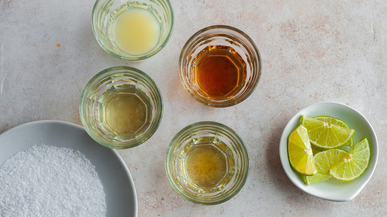Once you're ready to begin, you will need to head to the store to gather all the necessary ingredients. Be sure to pick up a reposado tequila (which just means it's been aged for 2-12 months), Grand Marnier, lime juice, agave, lime wedges, and coarse salt for the garnish.