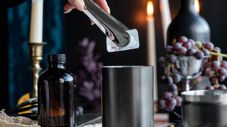 - Add a couple ice cubes to the drink, then cover it and shake again for about 15 seconds, or until very chilled.